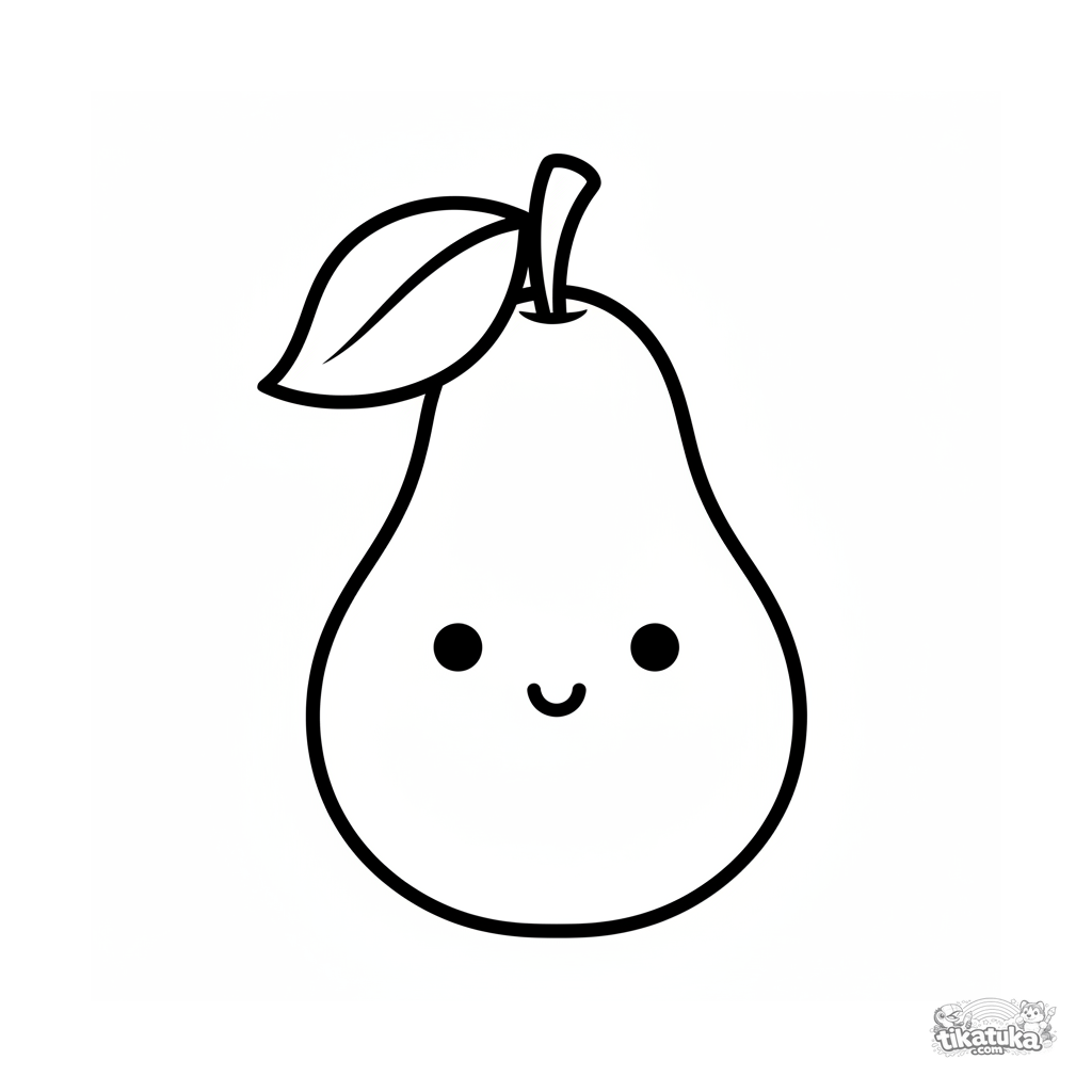 Página para colorear muy sencilla con una pera grande y sonriente para bebés de 2-3 años. Formas grandes, contornos gruesos.