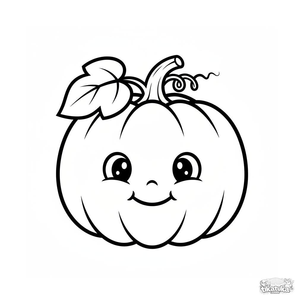 Página para colorear muy simple para niños pequeños 2-3: una calabaza grande y amigable con cara. Formas grandes, mucho espacio.