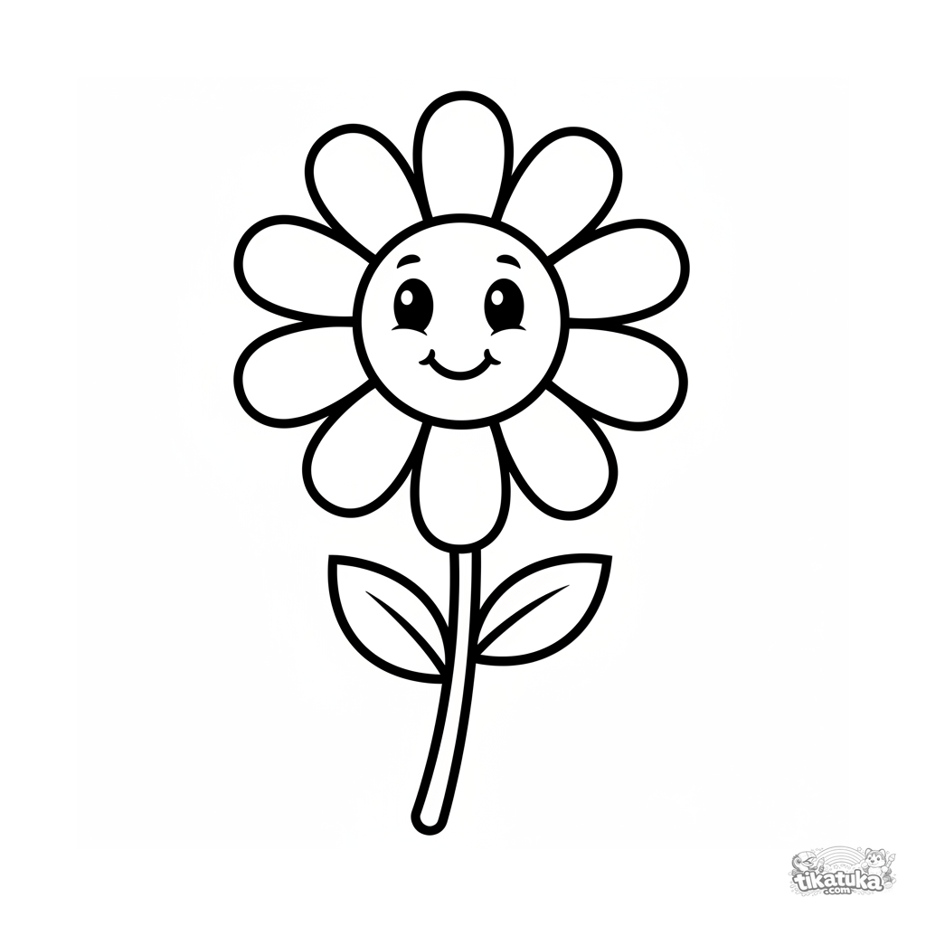 Una página para colorear de Flores con detalle Fácil. Es adecuada para edades 2-3 años, se imprime bien en casa y se abre enseguida en modo en línea.