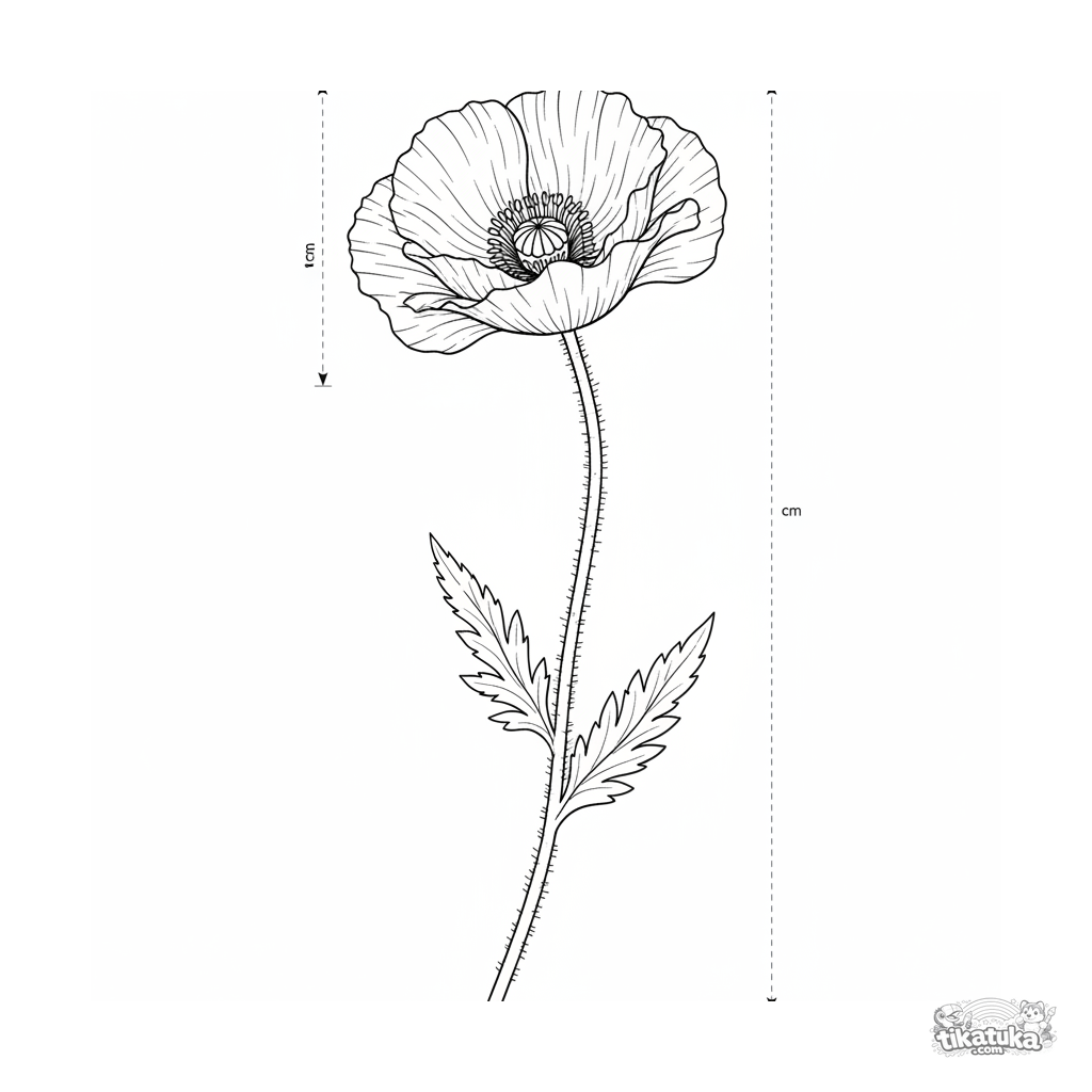 Página para colorear detallada para niños de 10-12 años: un esbozo botánico de una amapola silvestre. Perfecta para amantes de la naturaleza.