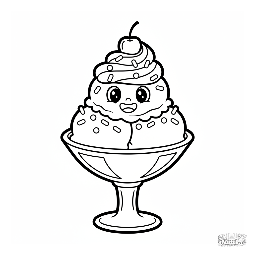 Página simple para colorear de un helado sonriente con chispas para niños pequeños de 2-3 años. Formas grandes y simples perfectas para primeros lápices.