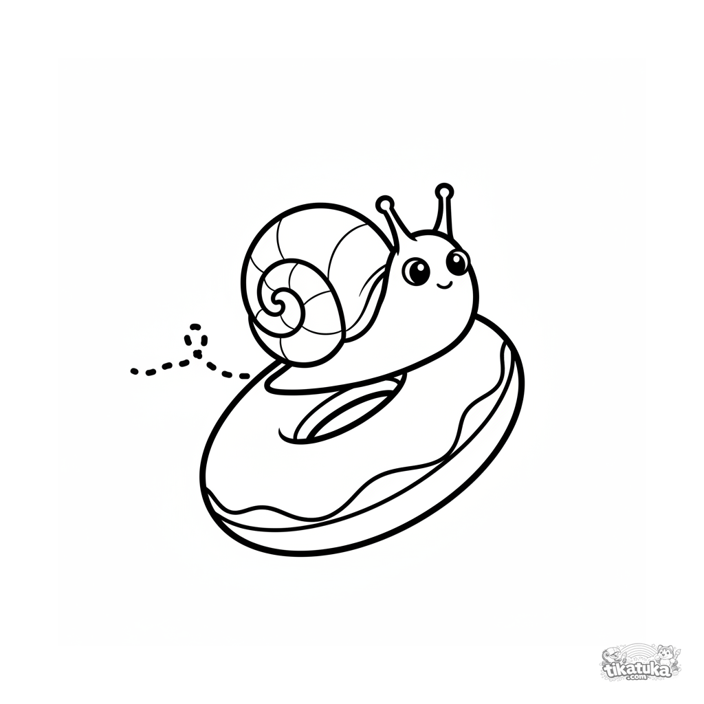 Página muy simple para colorear para bebés de 2 a 3 años: un caracol se desliza lentamente por un anillo inflable en el fondo de la piscina.