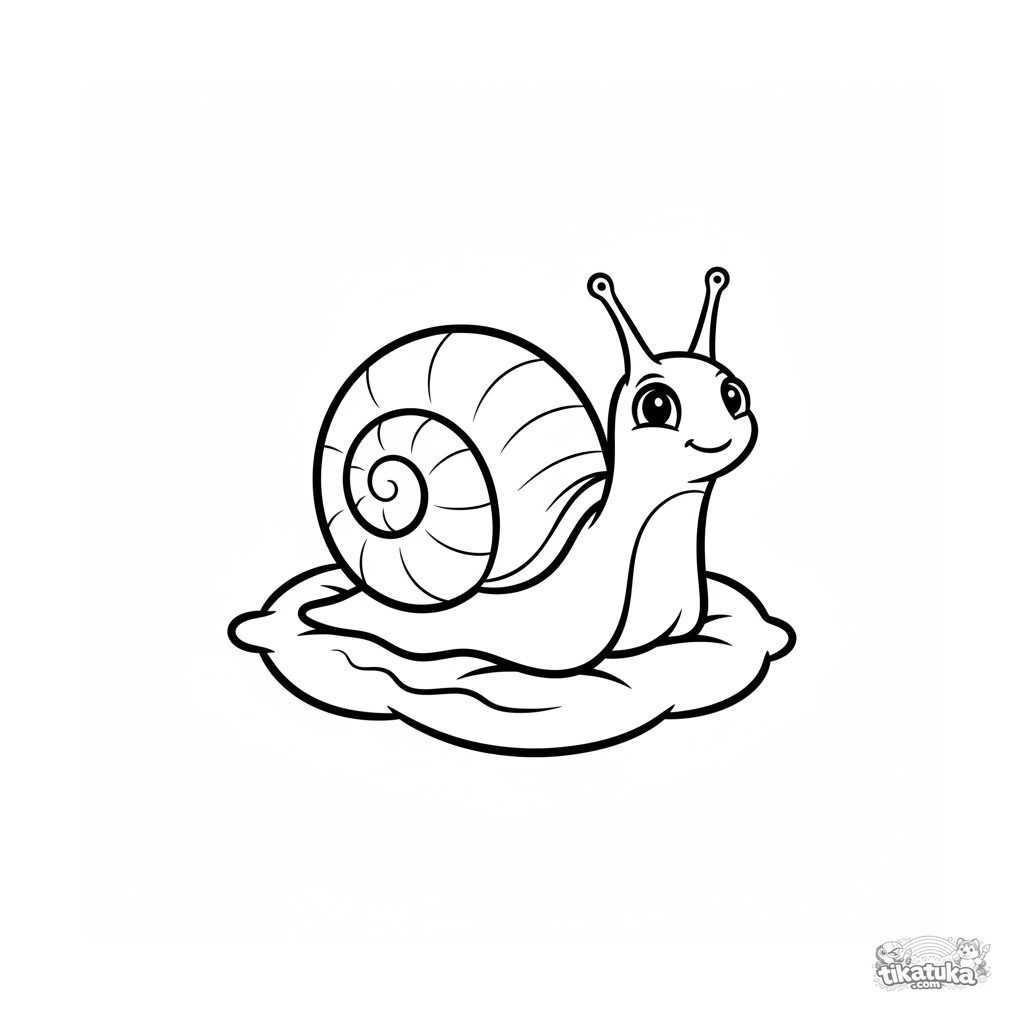 Página para colorear simple para niños de 2-3 años: un caracol con caparazón-casa se arrastra por un cojín. Forma espiral suave, número mínimo de líneas.