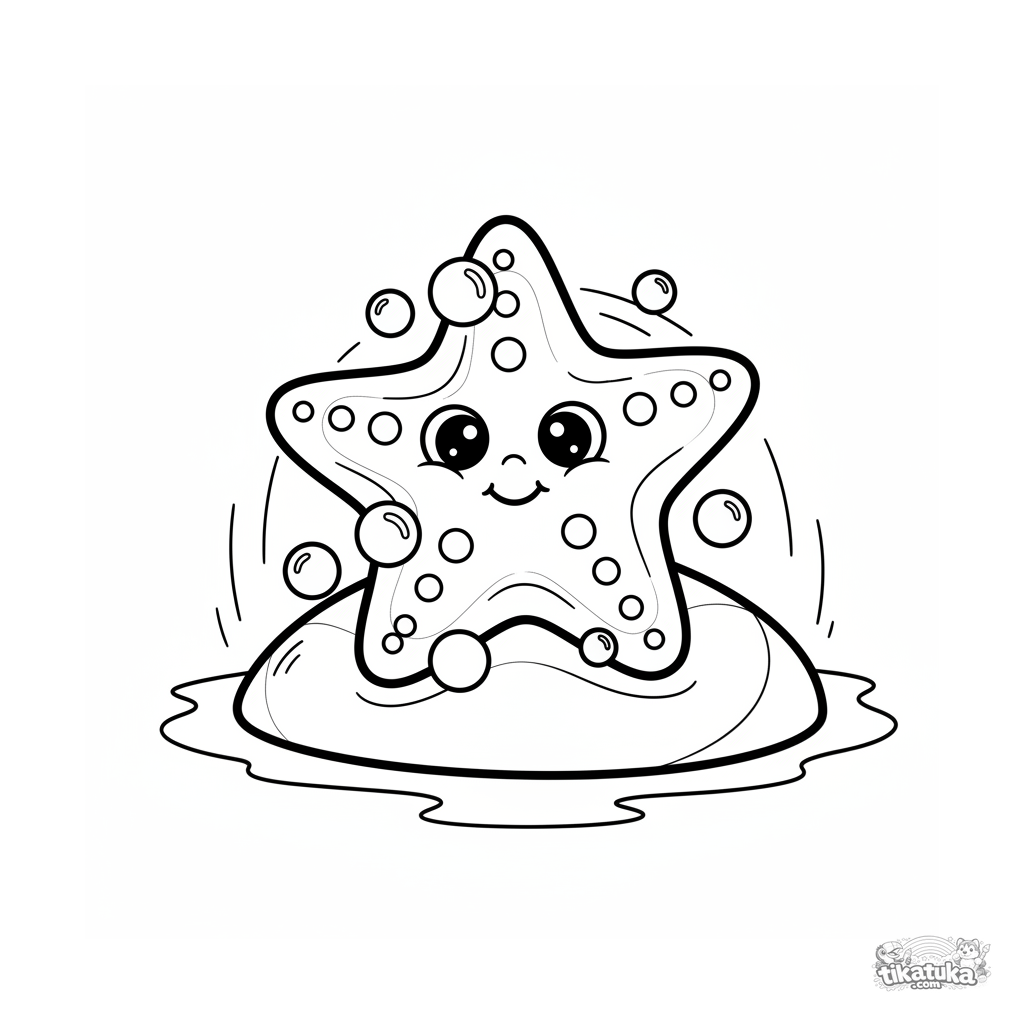 Página muy simple para colorear para niños pequeños 2-3: estrella de mar en una roca en agua cálida. Áreas grandes para colorear.
