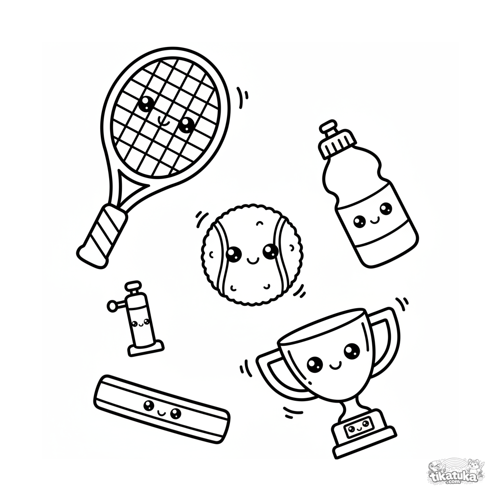 Página para colorear tipo hoja de pegatinas para niños de 4-6 años: iconos de equipo de tenis separados. Contornos claros.