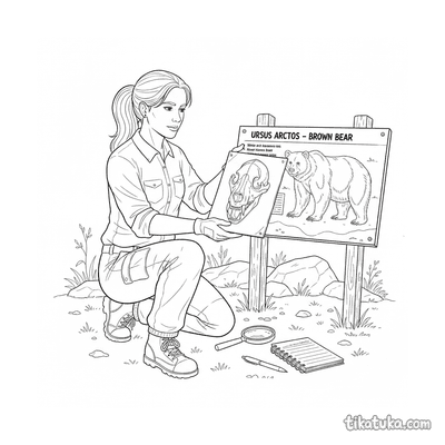 Investigador comparando diagrama de cráneo de oso con cartel