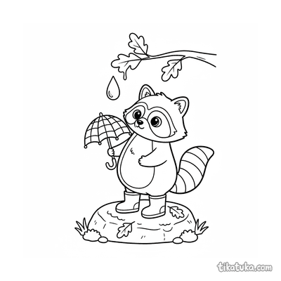 Mapache con paraguas bajo rama