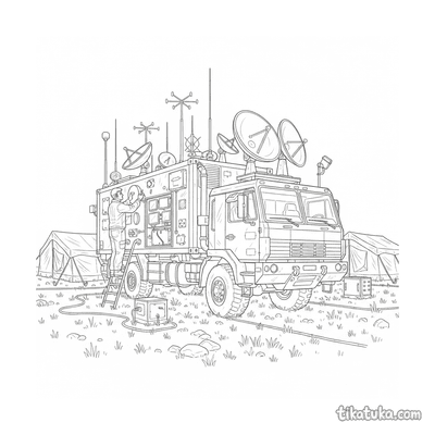 Camión de puesto de mando con antenas