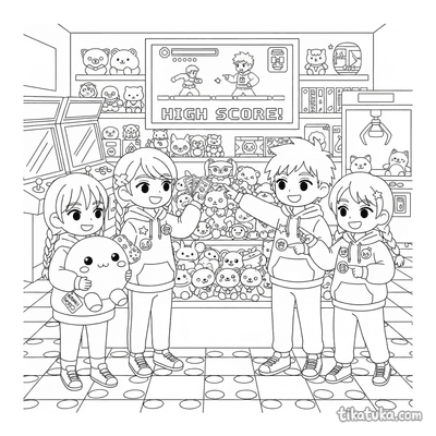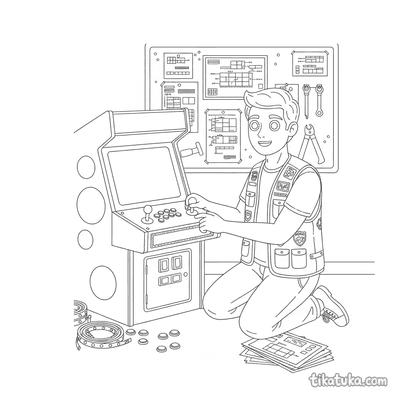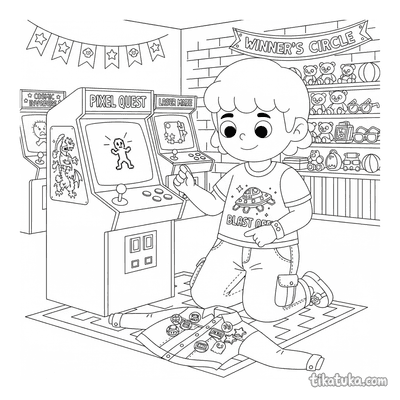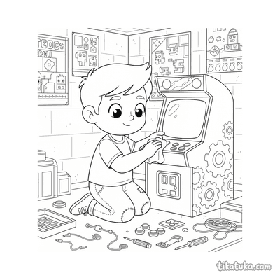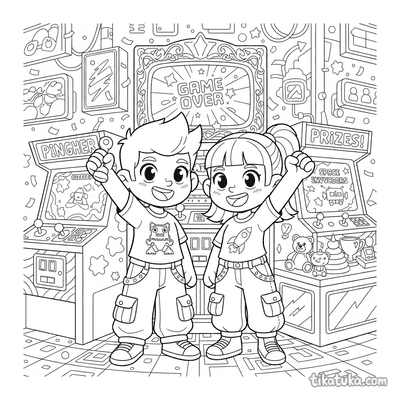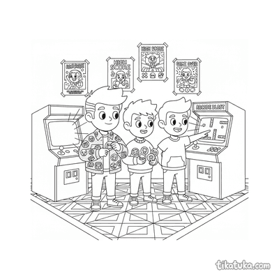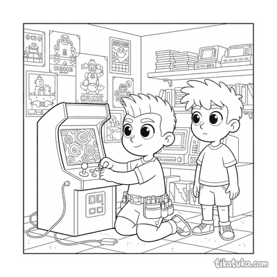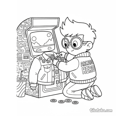 Esta colección de páginas para colorear de Arcade captura la atmósfera de las salas de videojuegos retro. Los dibujos presentan escenas de acción y personajes inmersos en este mundo de entretenimiento.