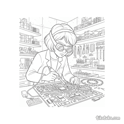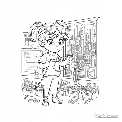 También hay artistas de placas de circuito soldando obras con LED y ponys pintores en el escenario, capturando la esencia del arte en formas inesperadas. Todas las ilustraciones tienen líneas claras en blanco y negro, ideales para imprimir en lote y usar en casa o en el aula. Puedes descargarlas gratis para colorear con lápices o marcadores, o incluso probar a colorearlas directamente en la pantalla.