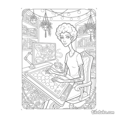 Esta colección de páginas para colorear celebra el mundo del arte y la creatividad. Los dibujos presentan una variedad de escenas y personajes relacionados con la expresión artística.