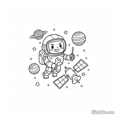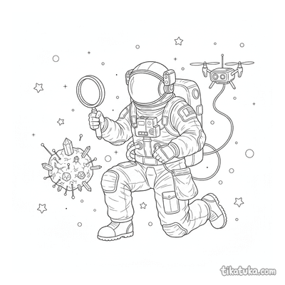 En esta sección encontrarás astronautas niños plantando banderas en la luna, robots astronautas flotando cerca de planetas anillados y reparando satélites en órbita. También hay escenas con microbios-cosmonautas, astronautas cerca de planetas y niñas astronautas explorando el espacio. Todas las imágenes tienen líneas claras y están listas para imprimirse en casa o en la escuela. Puedes descargar las páginas de una en una o varias a la vez, y también colorearlas directamente en la pantalla si lo prefieres.
