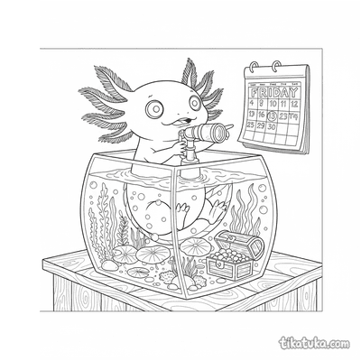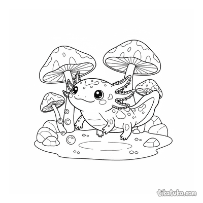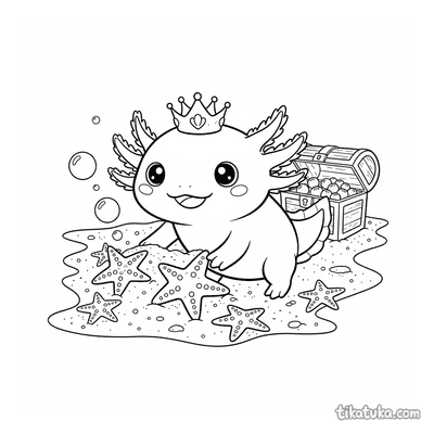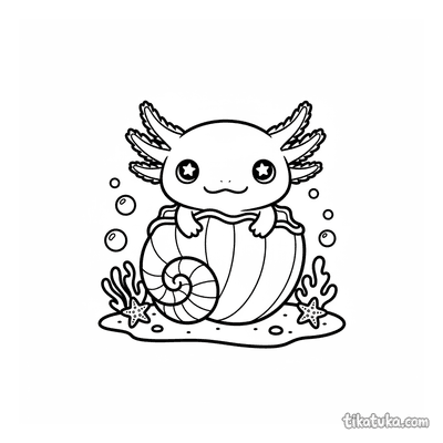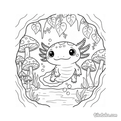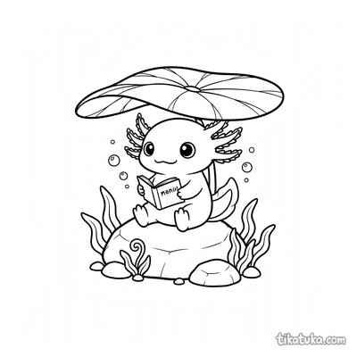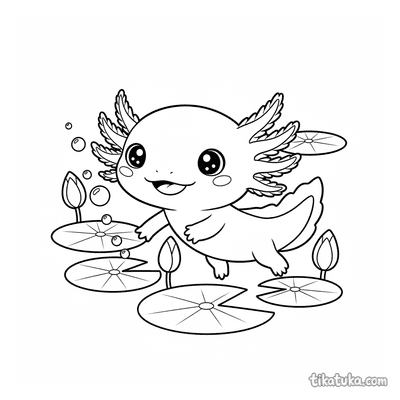 En estas páginas, los ajolotes exploran bosques submarinos de hongos brillantes, se asoman desde grandes hojas de lirio o se esconden dentro de conchas y cofres. Algunos llevan coronas y juegan con estrellas de mar, mientras otros nadan con curiosidad entre nenúfares y columnas de piedra. Todas las ilustraciones presentan líneas claras en blanco y negro, ideales para que los niños practiquen dentro de los contornos. Puedes descargar 43 dibujos de forma gratuita para imprimir en casa o colorear directamente en la pantalla, una actividad perfecta para aprender sobre esta singular especie.