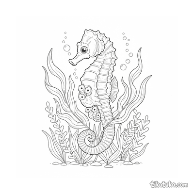 Caballito de mar papá llevando bebés en algas