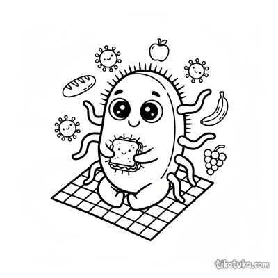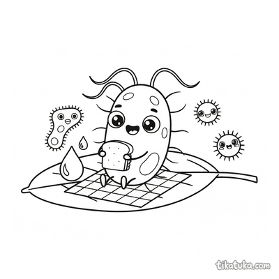 En esta sección encontrarás bacterias con personalidad, como una bacteria con gafas, una familia de microbios tomados de la mano o una bacteria cocinera con su gorro. También hay vibriones detectives, bacterias maestras y bacterias disfrutando de un picnic sobre una hoja. Todas las ilustraciones tienen contornos claros en blanco y negro, perfectos para que los niños den vida a estos pequeños personajes. Puedes descargar e imprimir cualquiera de las páginas de forma gratuita, ideal para proyectos escolares o para una tarde de manualidades. También es posible colorearlas directamente en la pantalla si prefieres una opción digital y sin necesidad de imprimir.