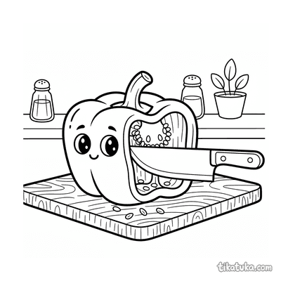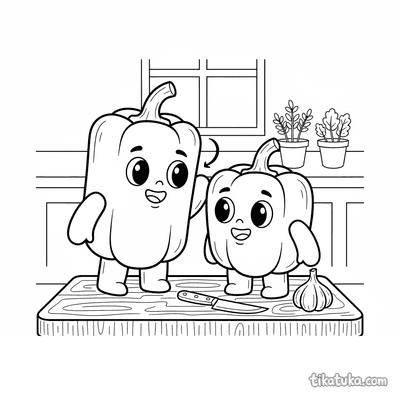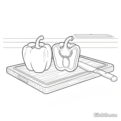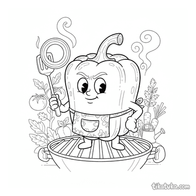 El pimiento es un vegetal que aparece en muchas escenas de cocina y diversión para colorear. Estas páginas para colorear presentan pimientos en diferentes situaciones y composiciones. Cada dibujo está en blanco y negro, listo para ser llenado de color.