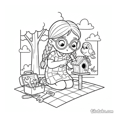 También hay pájaros carpinteros inspeccionando la madera, estorninos cantando en el techo y carboneros llevando ramitas para hacer su nido. Todas las ilustraciones tienen contornos nítidos en blanco y negro, ideales para imprimir en casa. Puedes descargar las 70 páginas de una vez o colorearlas directamente en la pantalla si prefieres no usar papel.