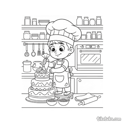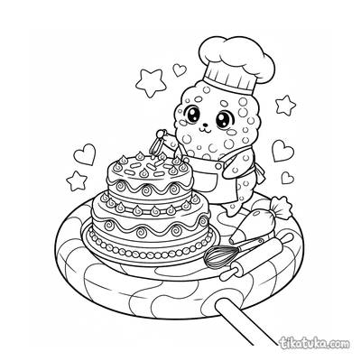 Esta colección reúne dibujos para colorear de pasteles y escenas relacionadas con la repostería. Las ilustraciones muestran tartas, hornos, cocineros y momentos dulces pensados para niños.