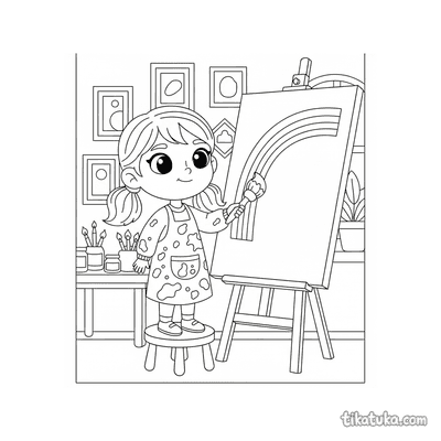 Niña Pintando un Arcoíris en un Lienzo