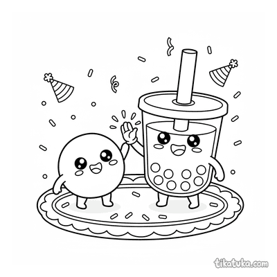 Taza de Boba y Mochi Celebrando en Plato de Postre
