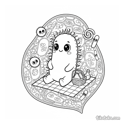 En esta sección encontrarás una variedad de células y microbios, como bacterias con flagelos, bacilos amigables y amebas en situaciones divertidas, como teniendo un picnic. Las ilustraciones muestran las estructuras celulares con claridad, perfectas para identificar sus partes. Puedes descargar todas las páginas en un solo archivo PDF para imprimir en casa o en el aula. Los contornos en blanco y negro son nítidos, ideales para usar con lápices, rotuladores o incluso para colorear directamente en la pantalla.