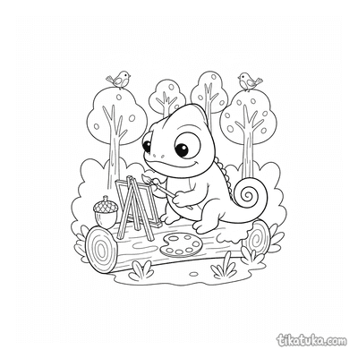 En estas páginas, el camaleón Radik se convierte en artista del bosque con su caballete, en superhéroe rescatando a un osito, en explorador espacial flotando cerca de un planeta y hasta en microbio amigable dentro de un plato de Petri. También lo verás conduciendo un camión de juguete, preparándose para una fiesta de té o trabajando como panadero y astronauta. Todas las ilustraciones presentan al camaleón con sus contornos claros y definidos, ideales para que los niños practiquen dentro de las líneas. Puedes descargar el lote completo de una vez para imprimir varias páginas y tener actividades listas para diferentes momentos.