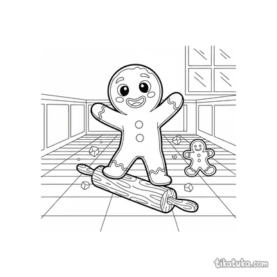 Hombre de jengibre montando rodillo por suelo de ajedrez