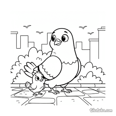Paloma guiando a un polluelo perdido