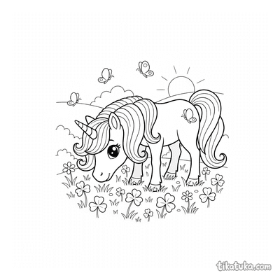 En estas ilustraciones, el trébol aparece como un campo donde pastan ponis y corderos, o como una cama mullida para un potro unicornio. También verás mariquitas descansando sobre sus hojas y cobayas mordisqueando flores cercanas en paisajes soleados. Todas las imágenes tienen líneas claras y están listas para imprimir, lo que las hace perfectas para una sesión de coloreado en casa o en el aula. Puedes descargar cada dibujo de trébol por separado o imprimir varios a la vez para tener una actividad lista en cualquier momento.