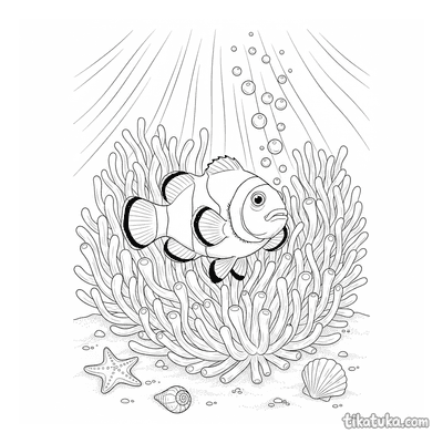 El pez payaso es un famoso habitante de los arrecifes de coral, conocido por su relación con las anémonas de mar. Estas páginas para colorear capturan su vida en el océano con líneas claras y detalles reconocibles.