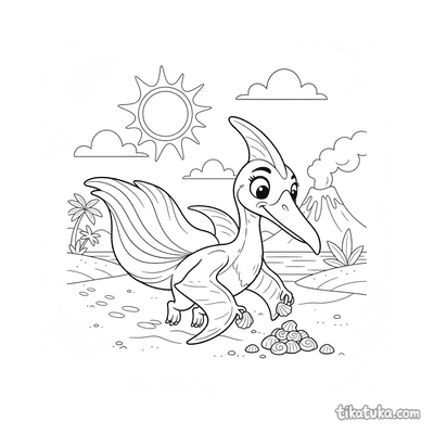 Pteranodon recolectando conchas brillantes