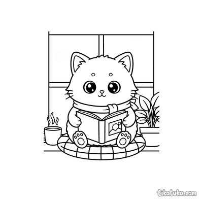 Gatito Leyendo Libro en Rincón Acogedor