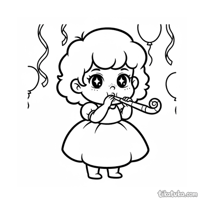 Niña Pequeña Intentando Soplar una Trompeta Fiesta
