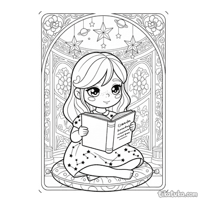 Niña Vestida de Constelación Leyendo Libro Bajo Estrellas de Papel