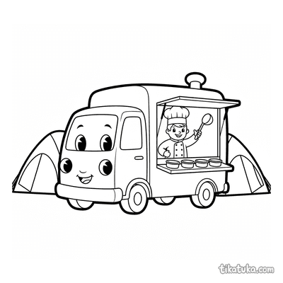 Camión de Cocina de Campo Sirviendo Comida