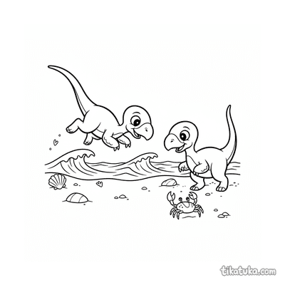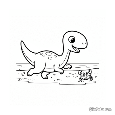 También hay escenas de un cangrejo ermitaño cambiando de concha en un charco de marea, o siendo perseguido por dinosaurios como el Compsognathus. Las ilustraciones muestran interacciones con otros animales, como una estrella de mar jugando con un cangrejo.