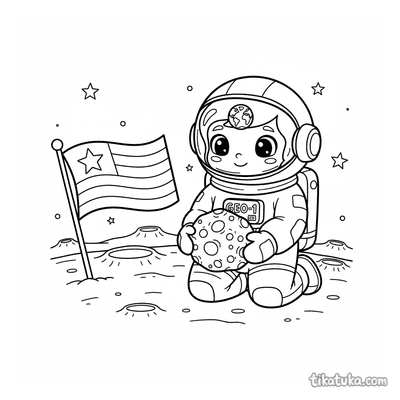 Niño Astronauta Plantando una Bandera en un Cráter