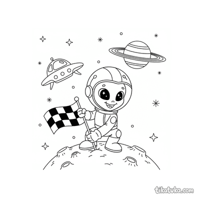 Explorador Alienígena Plantando una Bandera en la Luna