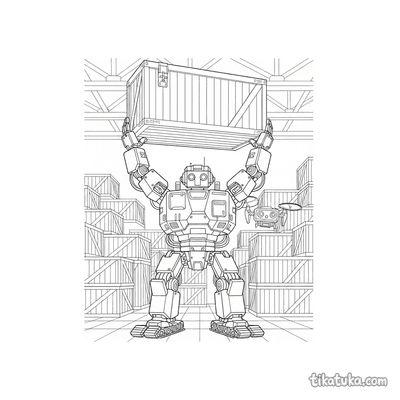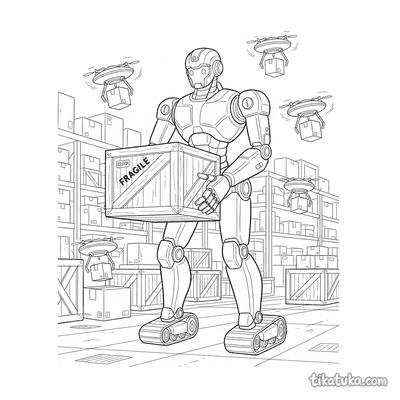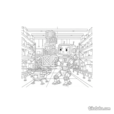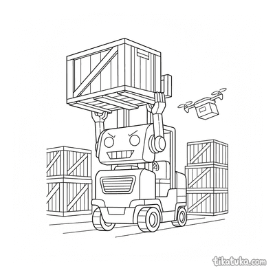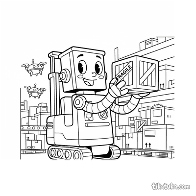 En estas páginas, los cajones aparecen siendo manipulados por robots montacargas, descargados por camiones de suministros o explorados por curiosos robots. Algunas escenas incluyen un perro robot buscando una caja de herramientas o un robot amigable organizando el almacén, siempre con los cajones como parte fundamental de la acción. Estas ilustraciones en blanco y negro tienen líneas claras, ideales para imprimir en lote y que los niños coloreen. Puedes descargar cada dibujo de forma gratuita para imprimirlo en casa o usar la herramienta online para colorear directamente en la pantalla.