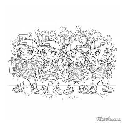 Crew de hip-hop posando junto a muro de graffiti