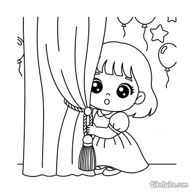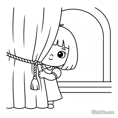 Esta colección de dibujos para colorear presenta diferentes escenas protagonizadas por una cortina. Las ilustraciones muestran este elemento en contextos variados, a menudo como telón de fondo o escondite.