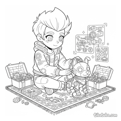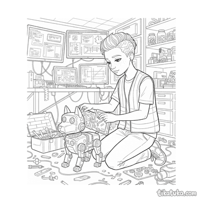 Encontrarás escenas que capturan la esencia de este universo, como estilistas con mascotas robot, programadores junto a racks de servidores, artistas de graffiti en sótanos y mensajeros recorriendo calles iluminadas con neón. También hay diseños de ropa urbana cyberpunk en vista plana y aprendices de ninja realizando parkour en entornos futuristas. Estas 23 páginas para colorear en blanco y negro tienen líneas definidas que facilitan pintar dentro de los bordes. Puedes descargarlas e imprimirlas todas juntas para tener un cuaderno de actividades o colorearlas directamente en la pantalla, explorando diferentes combinaciones para los trajes y los brillantes letreros de neón.