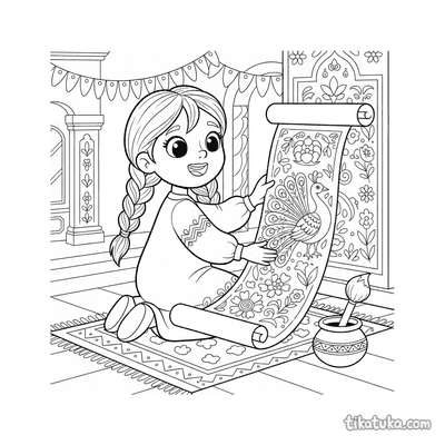 Niña desenrollando largo rollo decorativo