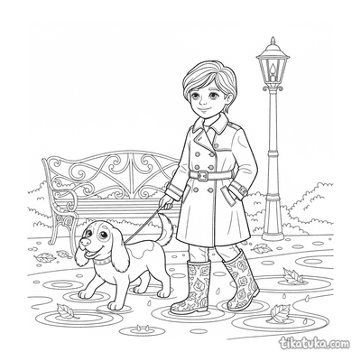 Escena de parque de otoño bajo la lluvia con perro