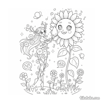 Dríade Floral Cuidando Girasol Cantor Gigante