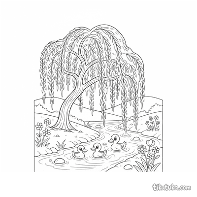 También hay escenas con un hidroavión en el lago y sauces llorones junto al agua. Nuestras láminas en blanco y negro tienen trazos definidos que facilitan colorear. Puedes descargar e imprimir todas las imágenes que quieras para tener una colección completa de patos.