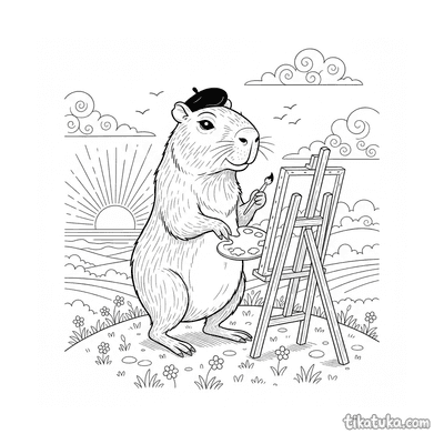 Un husky artista, un carpincho pintando el atardecer o un robot creativo trabajan frente a sus lienzos. También hay estudios de arte flotantes, niñas pintando con acuarela y zorros que dan clases, todos con su caballete como compañero.