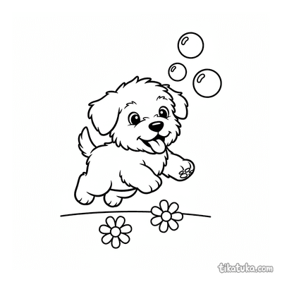Cachorro de perro pastor persiguiendo burbujas