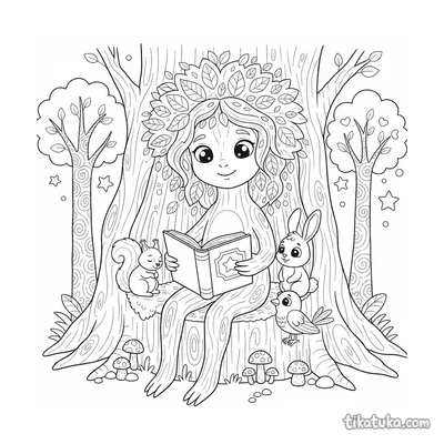 Árbol-Ent Caprichoso Leyendo Libro a Animalitos en Hueco