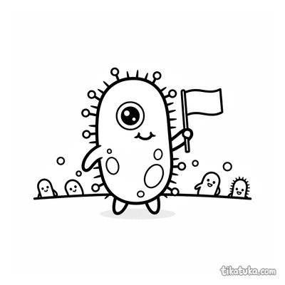 Bacteria Tierna Sosteniendo una Bandera Pequeña
